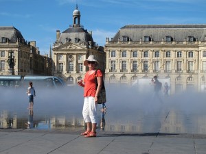We have enjoyed making our way up the west coast of France in the past week or so. Bordeaux is a beautiful city, astride the River Garonne, with a long promenade of stately buildings, and gardens and tree-lined boulevards running off it. We had a very warm, sunny day to explore, and one of the highlights was the Mirror Lake on the promenade in front of La Bourse, which cycles through 3 stages: it starts with a misty spray at knee height, then it floods the surface to about 2cm deep to make the mirror, then drains away again completely after about 10 minutes. Amazing how much fun you can have with a bit of water and a flat surface. The kids loved it of course, splashing around everywhere, and the adults also got to mess around without getting seriously wet. It does require some patience to get a photo of reflections though – until everyone has stopped splashing!